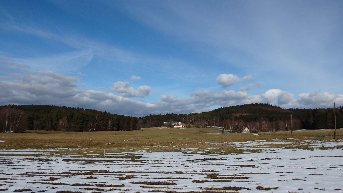 Sem tam sněhové přeháňky, teď polojasno, vítr SV,3,2 m/s, tlak 1016 hPa, vlhkost 30%.