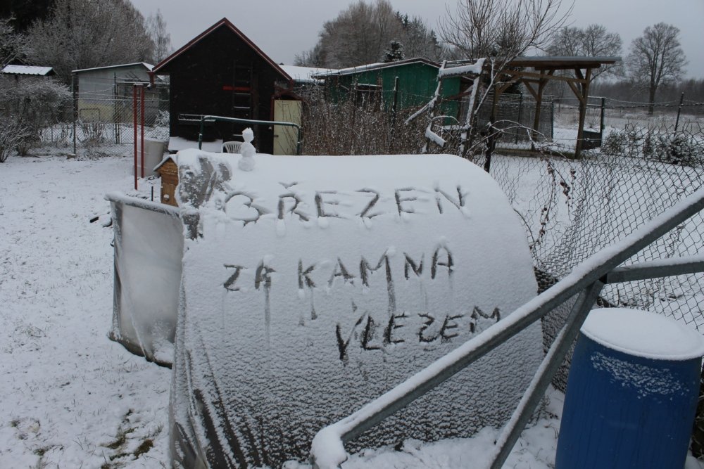 zataženo, mlhavo, slabý až mírný vítr, po nočním sněžení místy leží poprašek na některých místech až 0.5cm / fotka pořízena nad městem ve městě skoro žádný sníh není