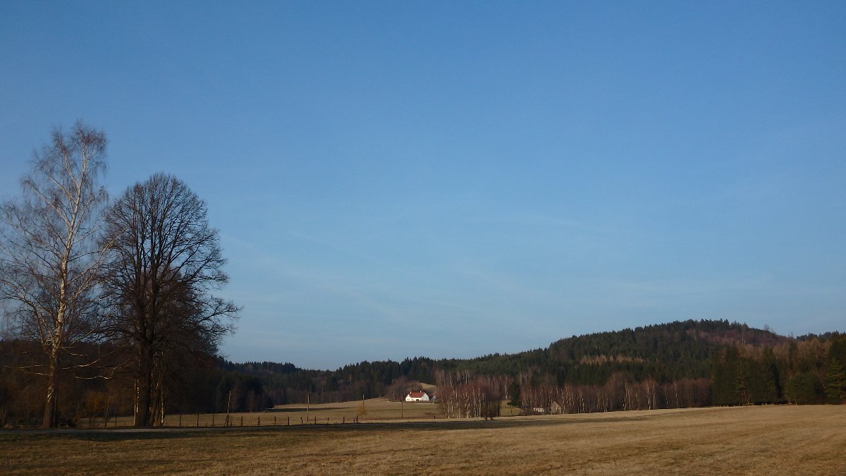 Odpoledne bylo hezky poměrně teplo, teď se ochlazuje. Tlak 1013 hPa, vlhkost 25%, vítr Z, 0,6 m/s.