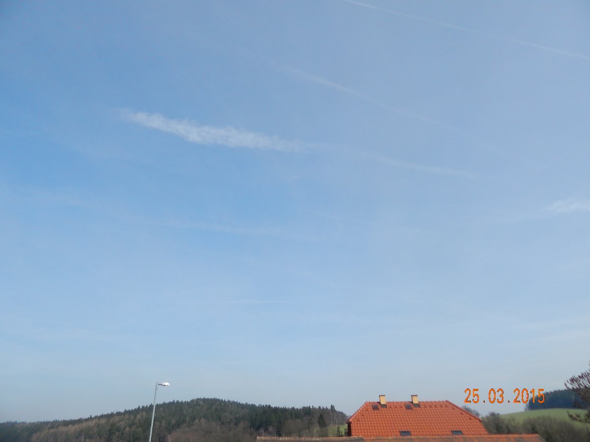 Je hezky, teplo. Mírný vítr. Tlak 1009 hPa, vítr Z, 2 m/s.