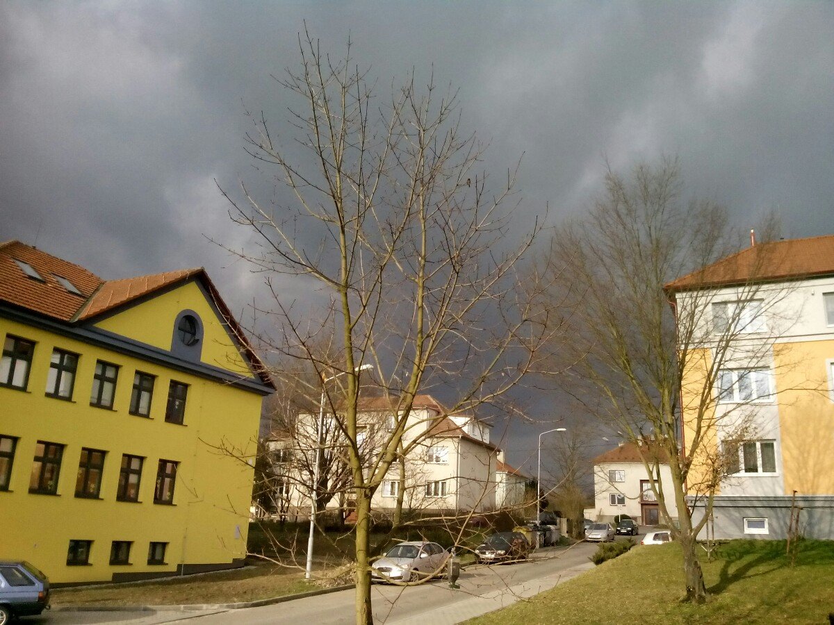 Vlhkost 49%, slabý vítr, oblačnost se protrhává až na polojasno.