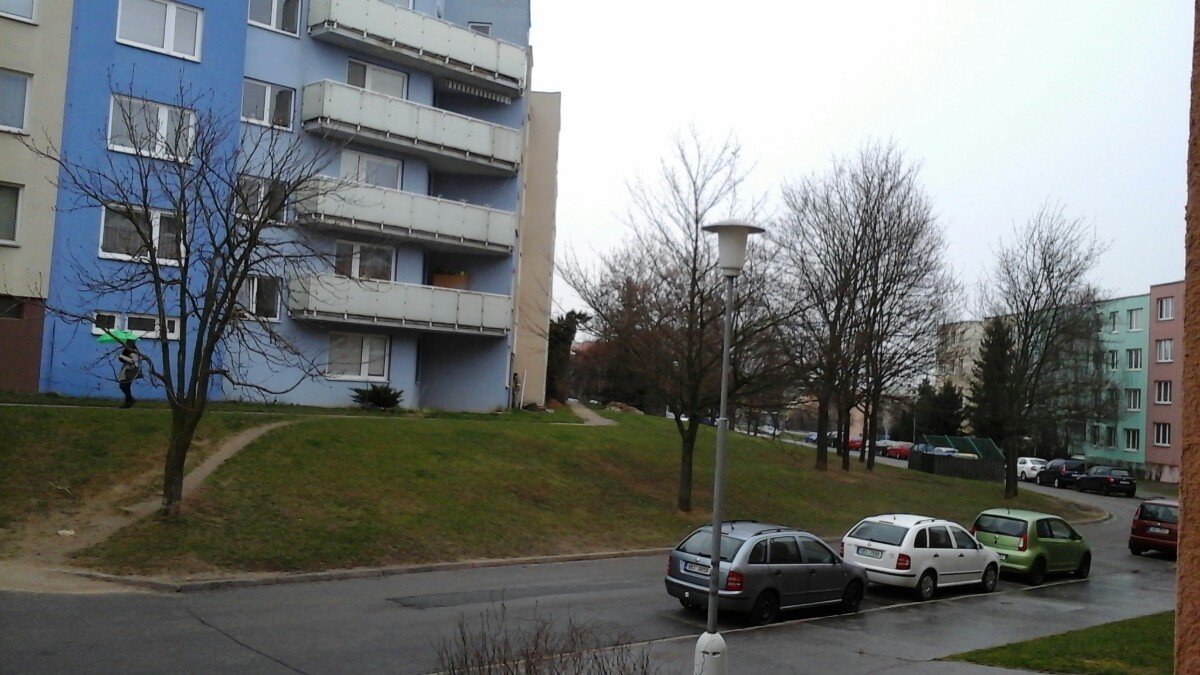 Silně sněží, slabý západní vítr. Foto: sníh útočí i v nížinách.