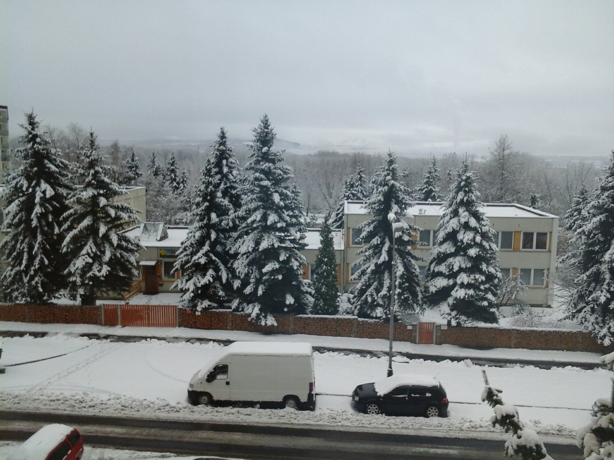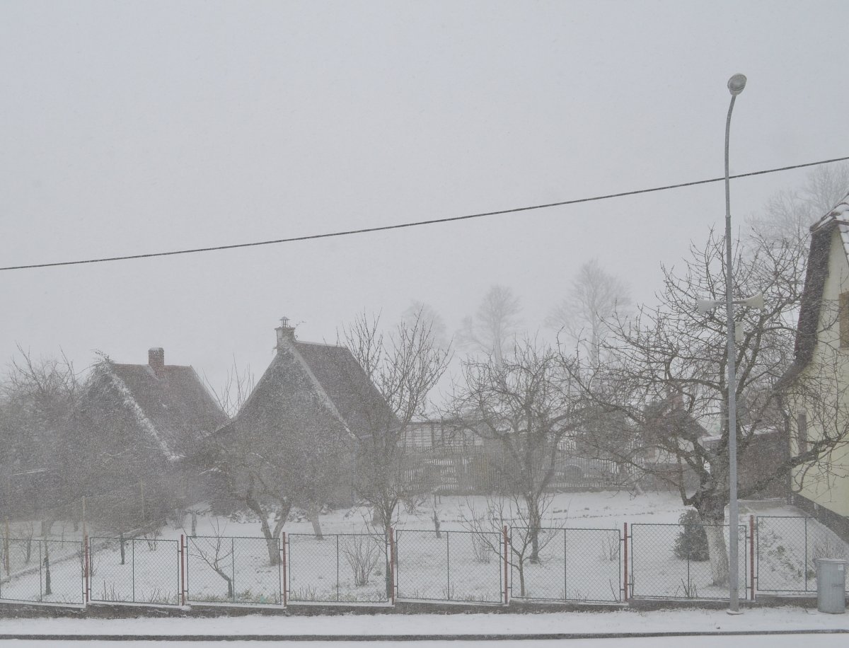 hustě sněží,mírný až silný vítr, foceno na mobil 31.března 2015,9:50hod