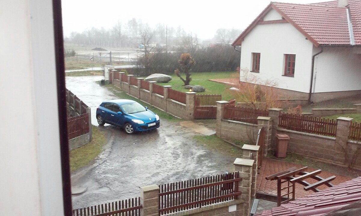 dnešní aprílové počasí přineslo ráno sníh, do kterého postupně začalo pršet...