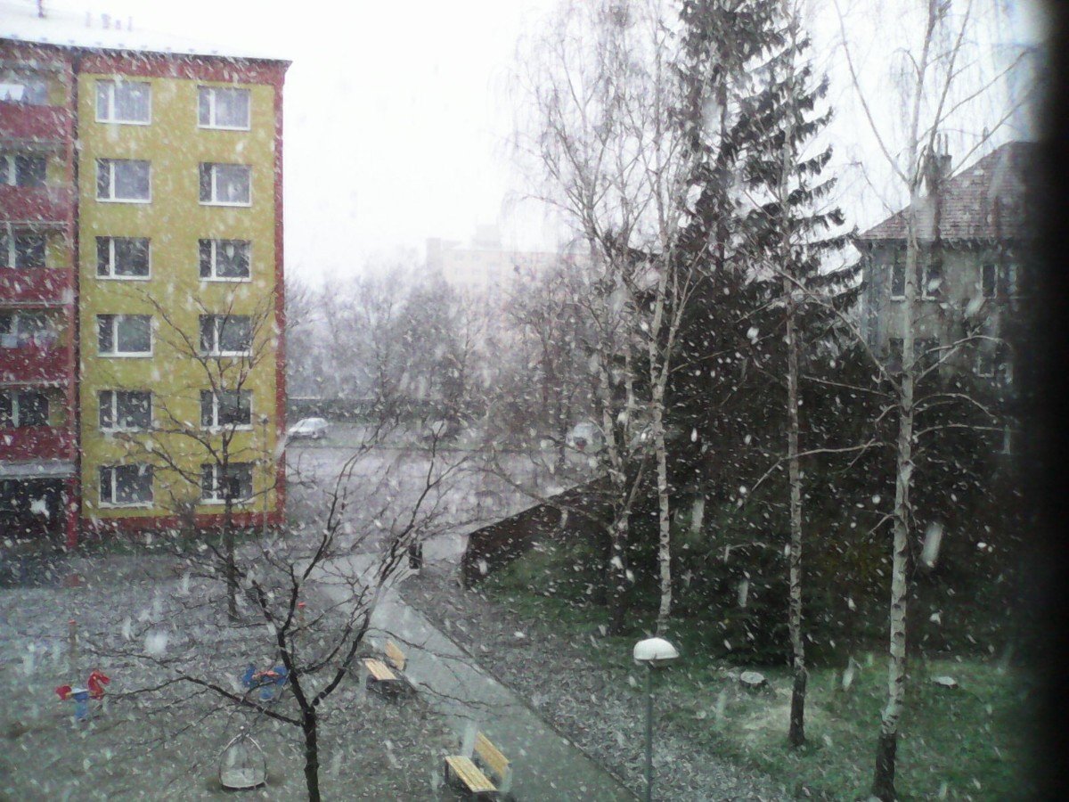 Stále sněží, teplota již pomalu roste (min. z rána bylo -0,4°C). Opět zesiluje SZ vítr.