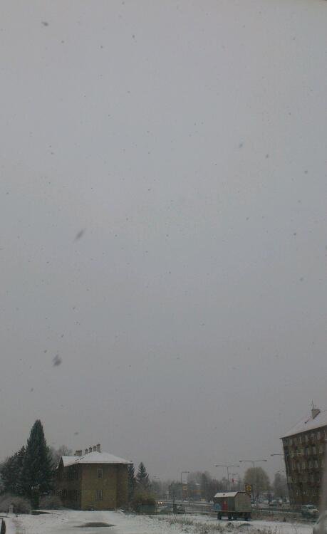 Celkem slušně sněží, tlak 1011,4hPa, Z vánek 0,7m/s.