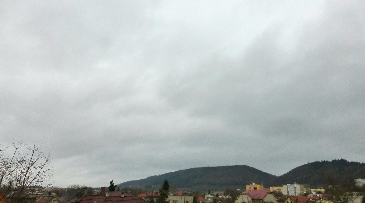 Drobně prší,mírný vítr,tlak 1007hPa,vlhkost 82%