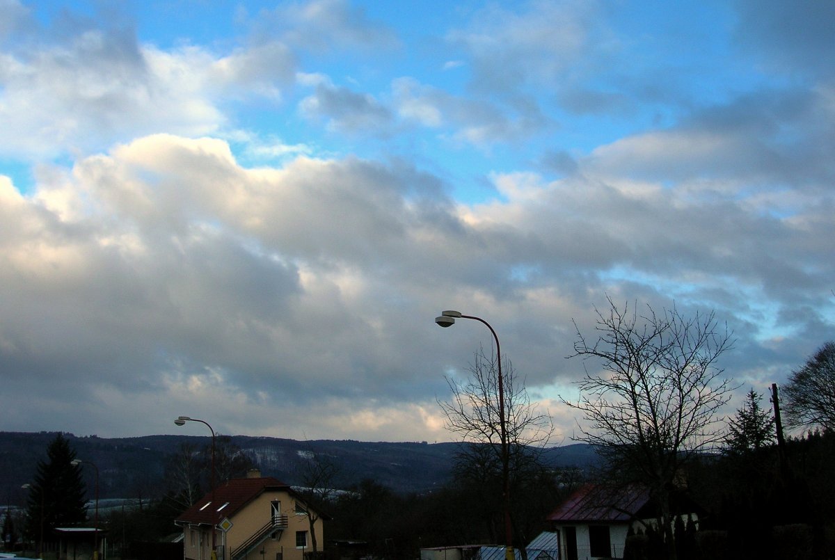 Tlak 1016 hPa, vlhkost 87 %, slabý západní vítr,sněhové přeháňky, po ránu 5 cm mokrého sněhu