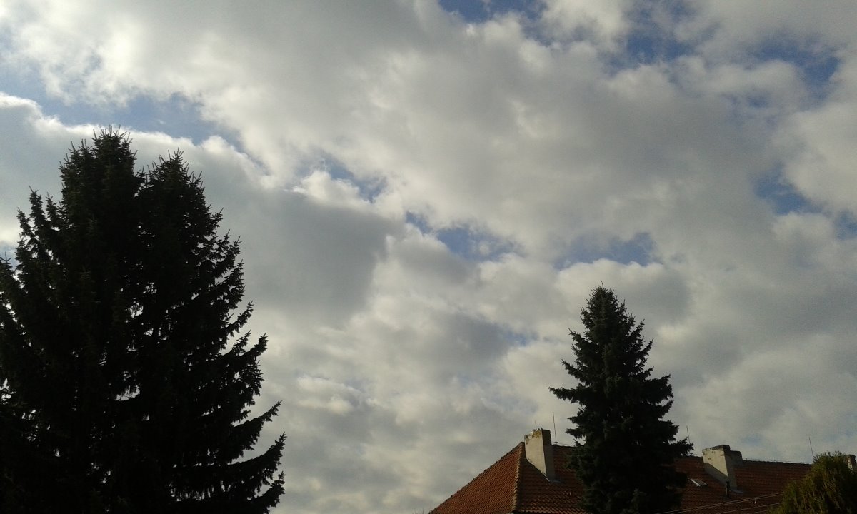Slabý Z vítr, při zemi stále slabý mráz /ranní minimum bylo -2,8°C/