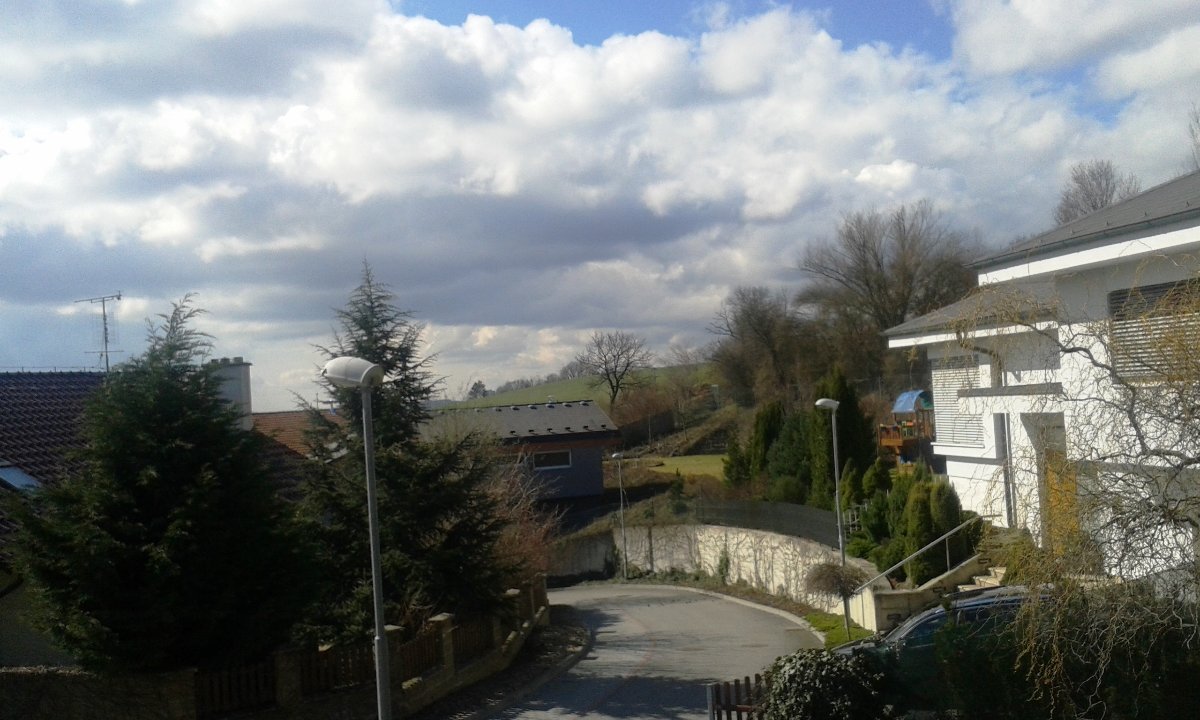 Tak teď se přihnala pořádná chumelenice. Na zemi se začíná tvořit slabý poprašek.