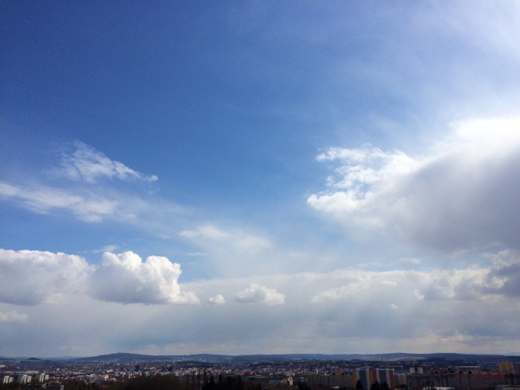 Stále více oblačnosti, nyní oblačno, severní větřík, tlak 1016 hPa.