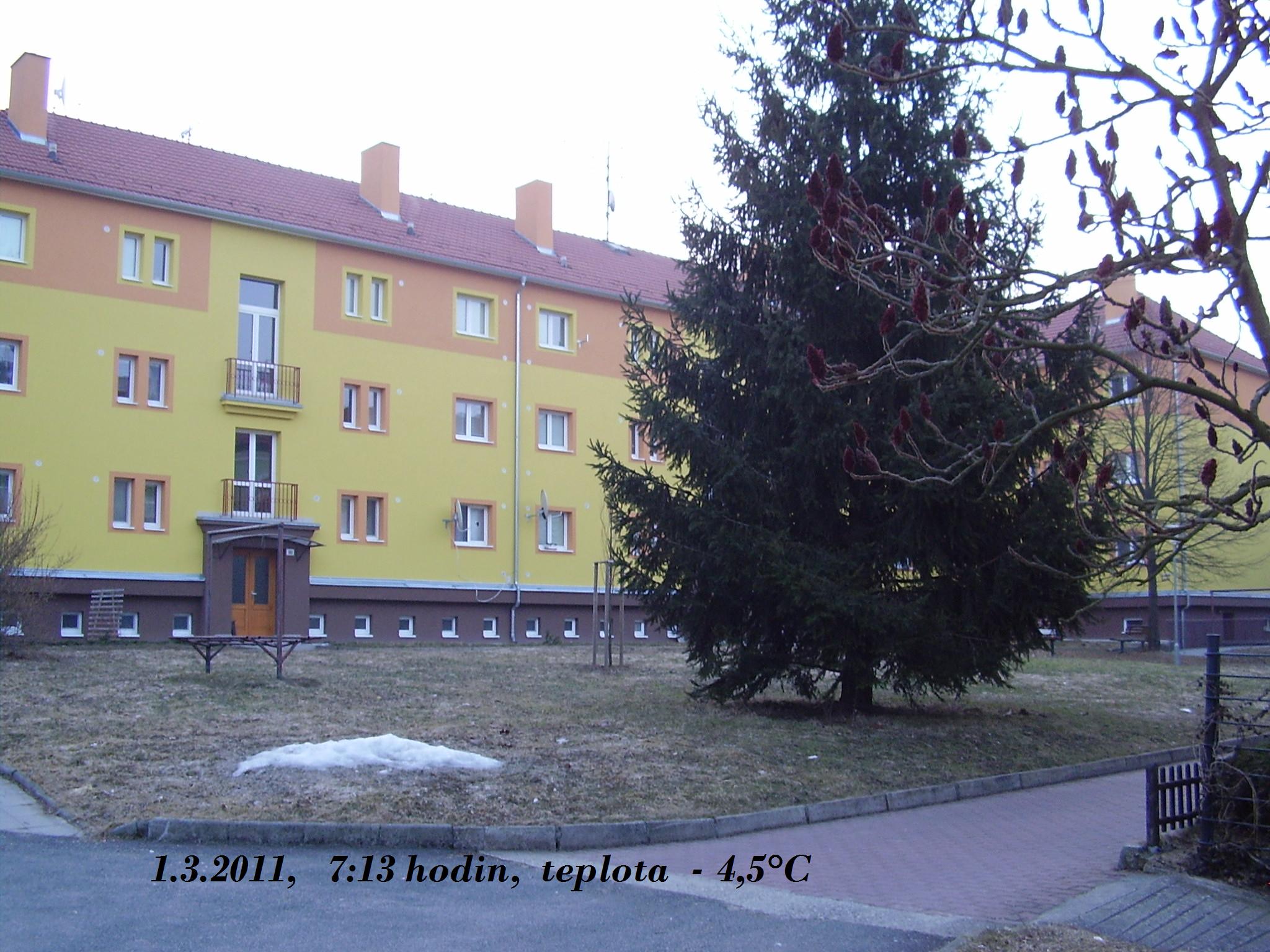 Jasno,viditelnost 10000 m, tlak 1031,3 hPa, vlhkost 49%, vítr SSZ 2,6 m/s.Na slunci je +12,2°C.
