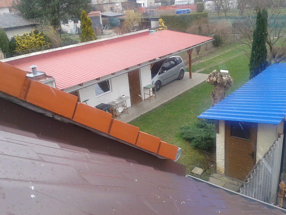 Po kratké,silné sněhové prěháňce se protrhává oblačnost.