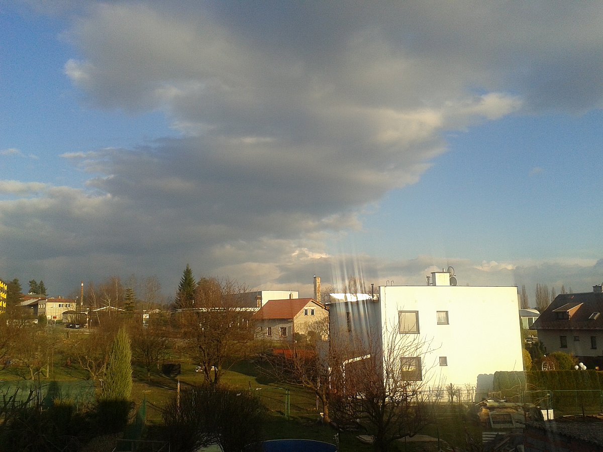 S vítr do 7 m/s, vzdálená přeháňka na V obzoru směrem od Bíteše.