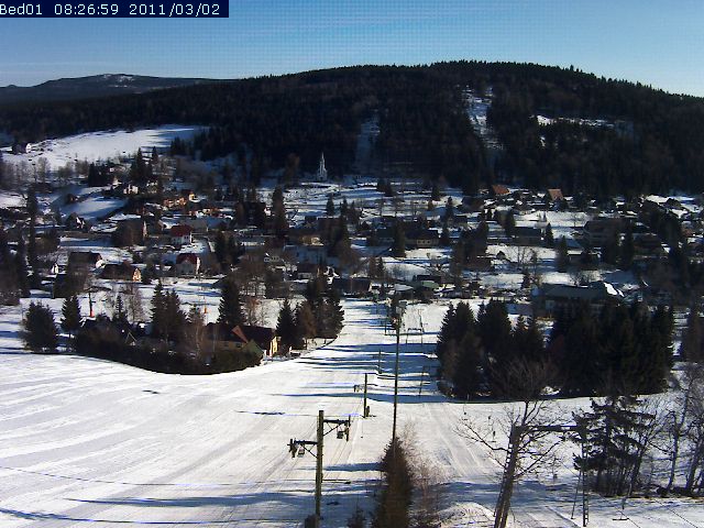 Dnes v Nové Peci na Šumavě jasno celou nco s min. tepl. ve 2m -10,4°C a v +5cm -11,7°C.