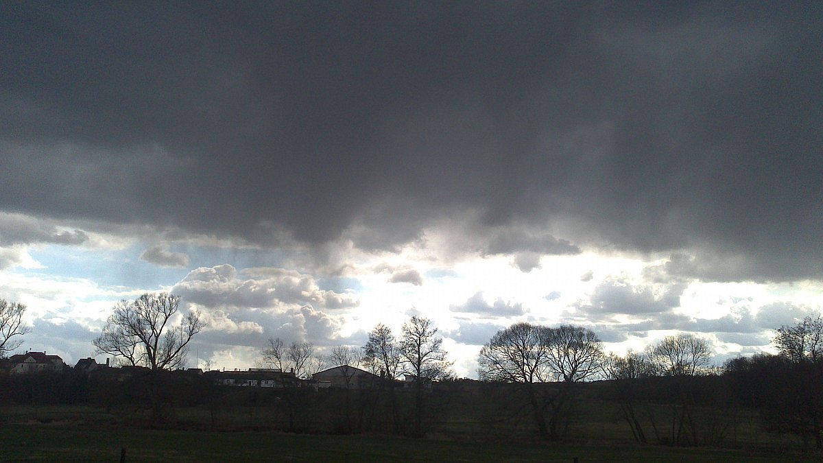 Silná sněhová přeháňka, mírný vítr. Sníh nový dnes zatím 1 cm, celkem 5 cm - mokrý. Foto 16.34 hod.