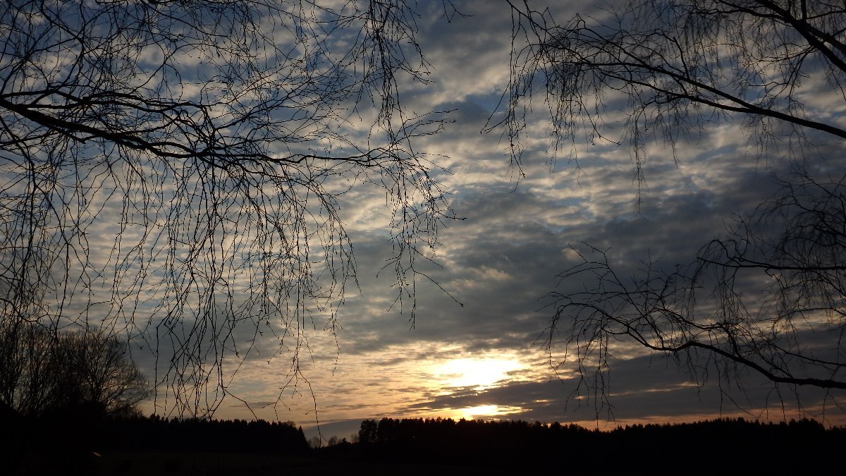 Slabý vítr,tlak opět stoupá 1032hPa,dnešní západ Slunce.