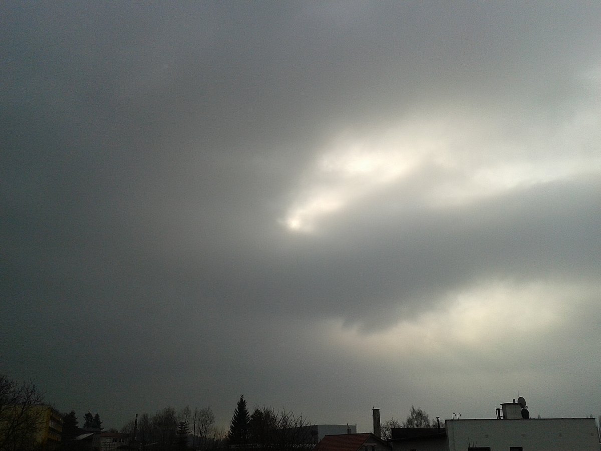Prší, oblačnost 100%, zákl.oblačnosti 473,22m.n.m., tlak 1026,4hPa, dohlednost 10km, rel.vlhkost 94,9%, abs.vlhkost 5,75g/m3, SSV větřík 23° 6,36km/hod.(2 Bft), poc.teplota -0,09°C, ochl.větrem 0,80°C, tepl.ros.bodu 2,56°C, tepl.mraků 1,36°C, délka dne u nás = 13hod.17min.50vt.