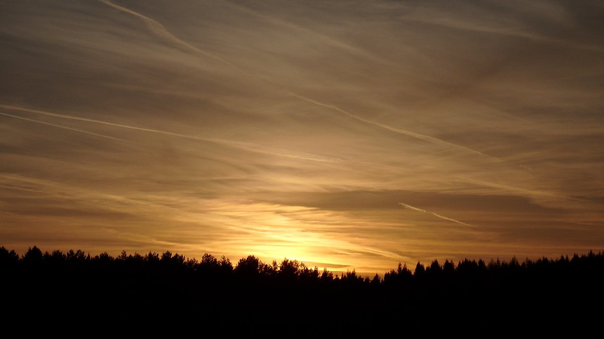 Slabý vítr,tlak 1029hPa,vlhkost 47%,dnešní západ Slunce do vysoké oblačnosti.