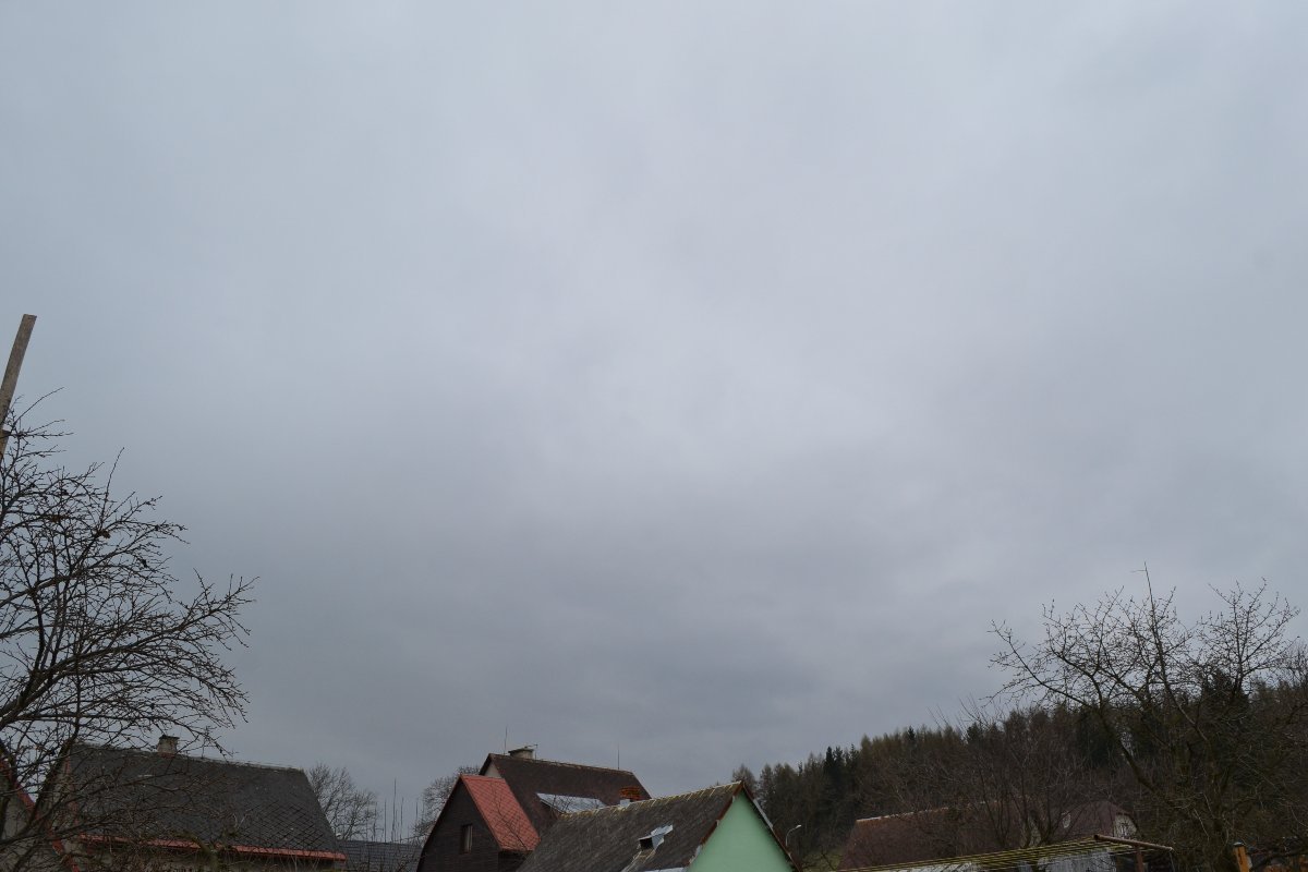 Tlak 1012,0hPa, dohlednost 20km, slabě prší.