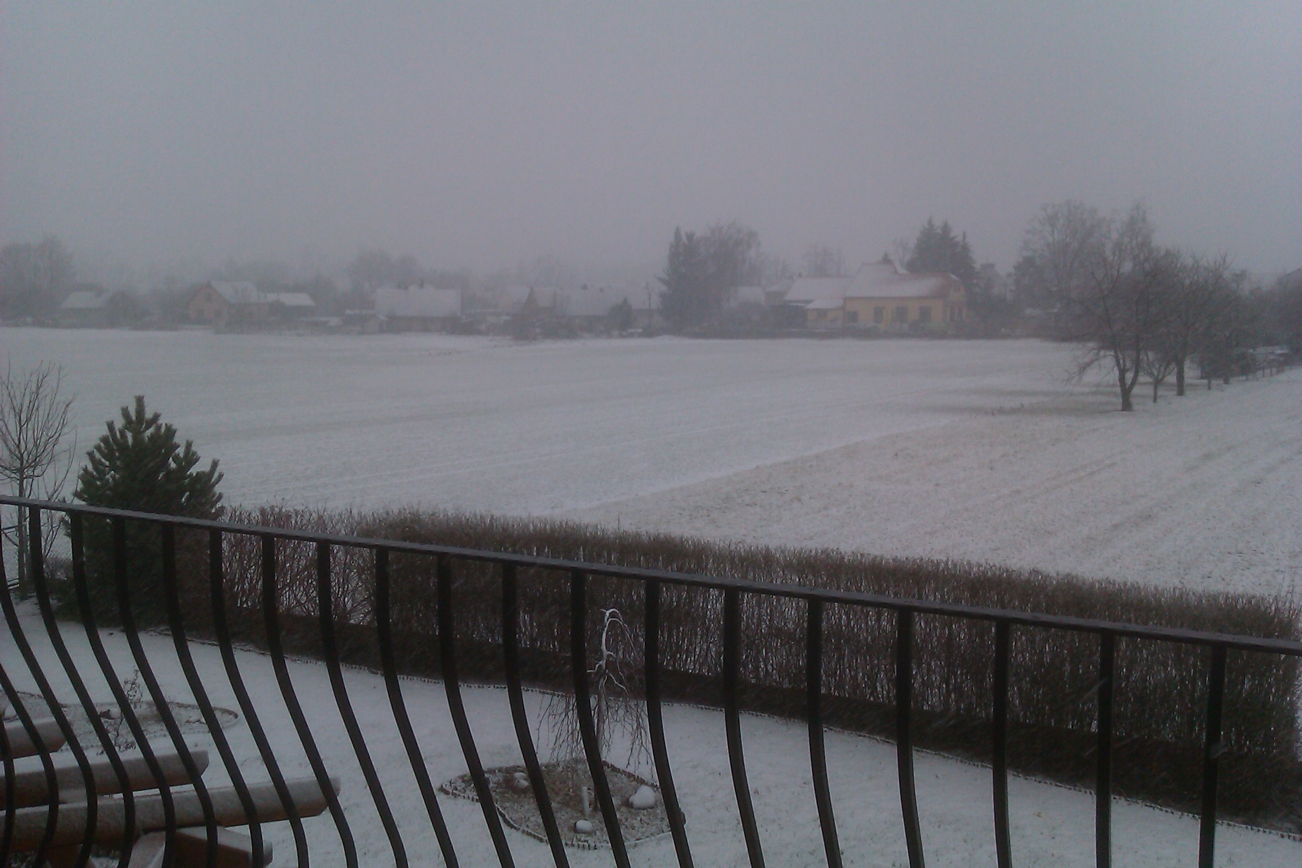sněžení přestalo a silně prší v lesních prostorech leží 10cm mokrého sněhu viz foto