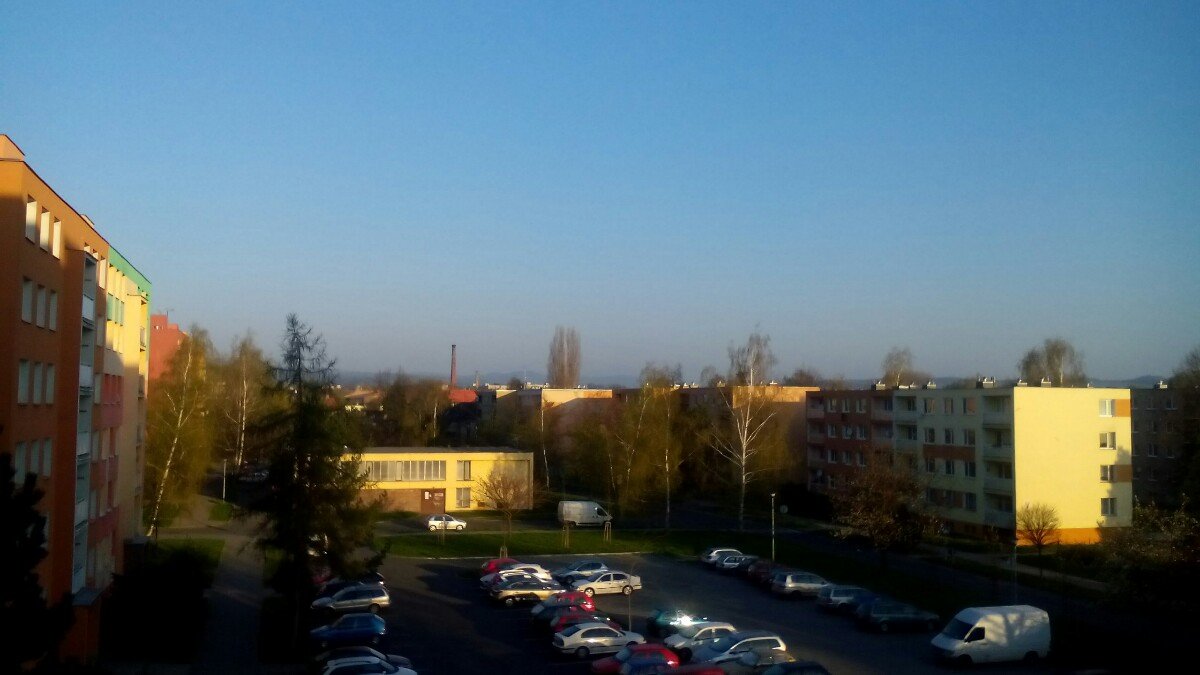 Min. teplota ráno 5,4°C, klidno, beze srážek /ty jsou patrné na Z obzoru/.