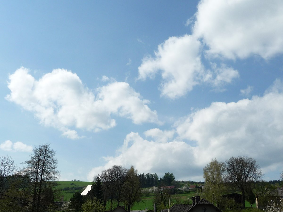Od západu přibývá oblačnost,slabý vítr,tlak 997hPa,vlhkost 62%