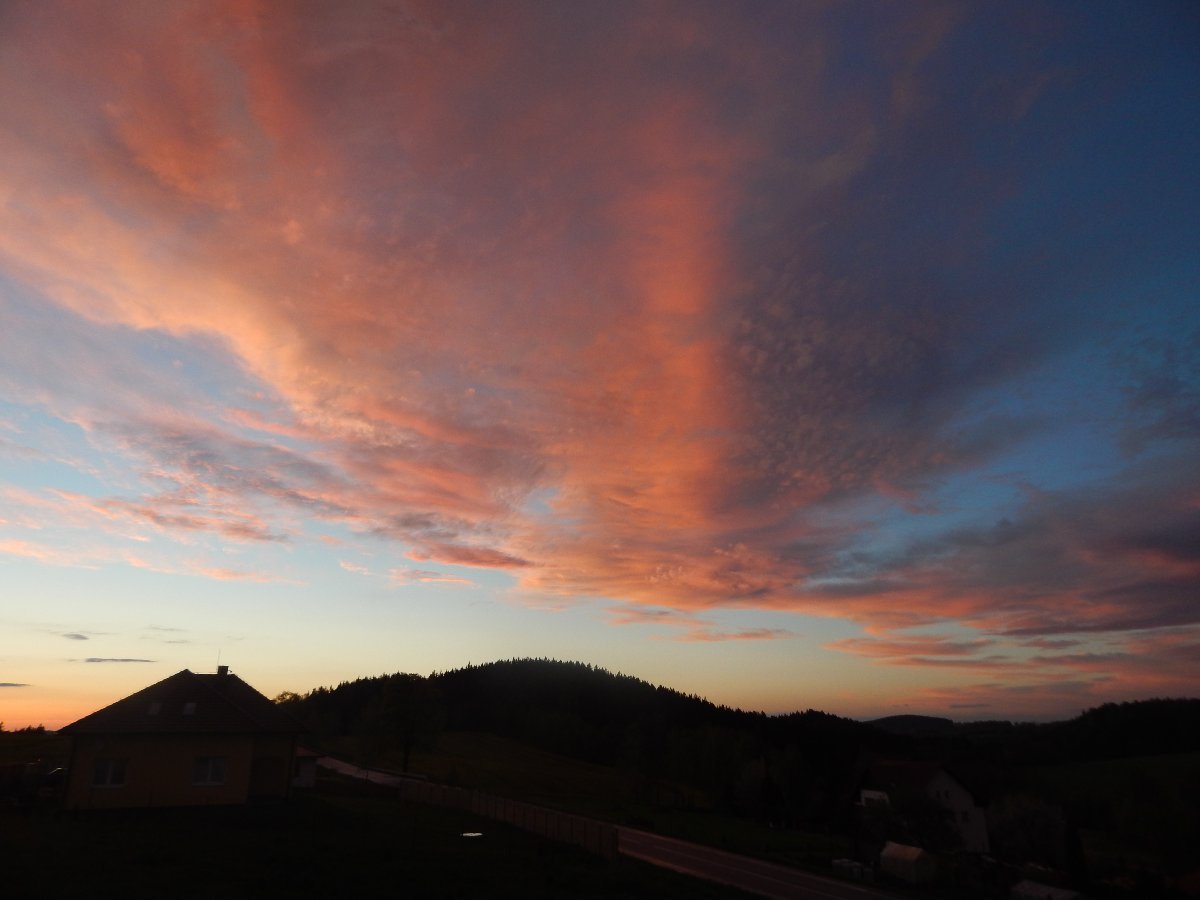 Tlak 1019 hPa, vlhkost 79% vítr 0 km/h. západ je více jasnější, východ spíše mračný. Přez den byli občas dešťové přeháňy, tak že příjemně zavlažilo :-)