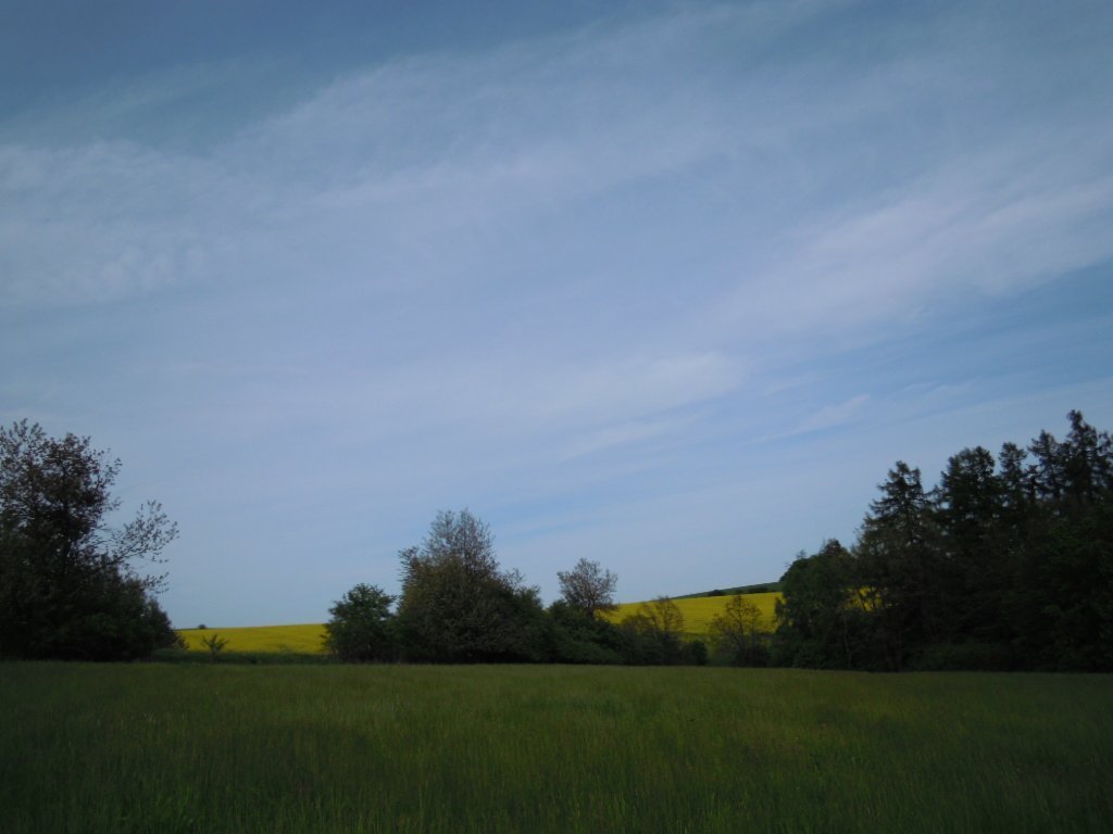 Je zataženo vysokou oblačnosti, je dusno a fouka mirný západní vitr.