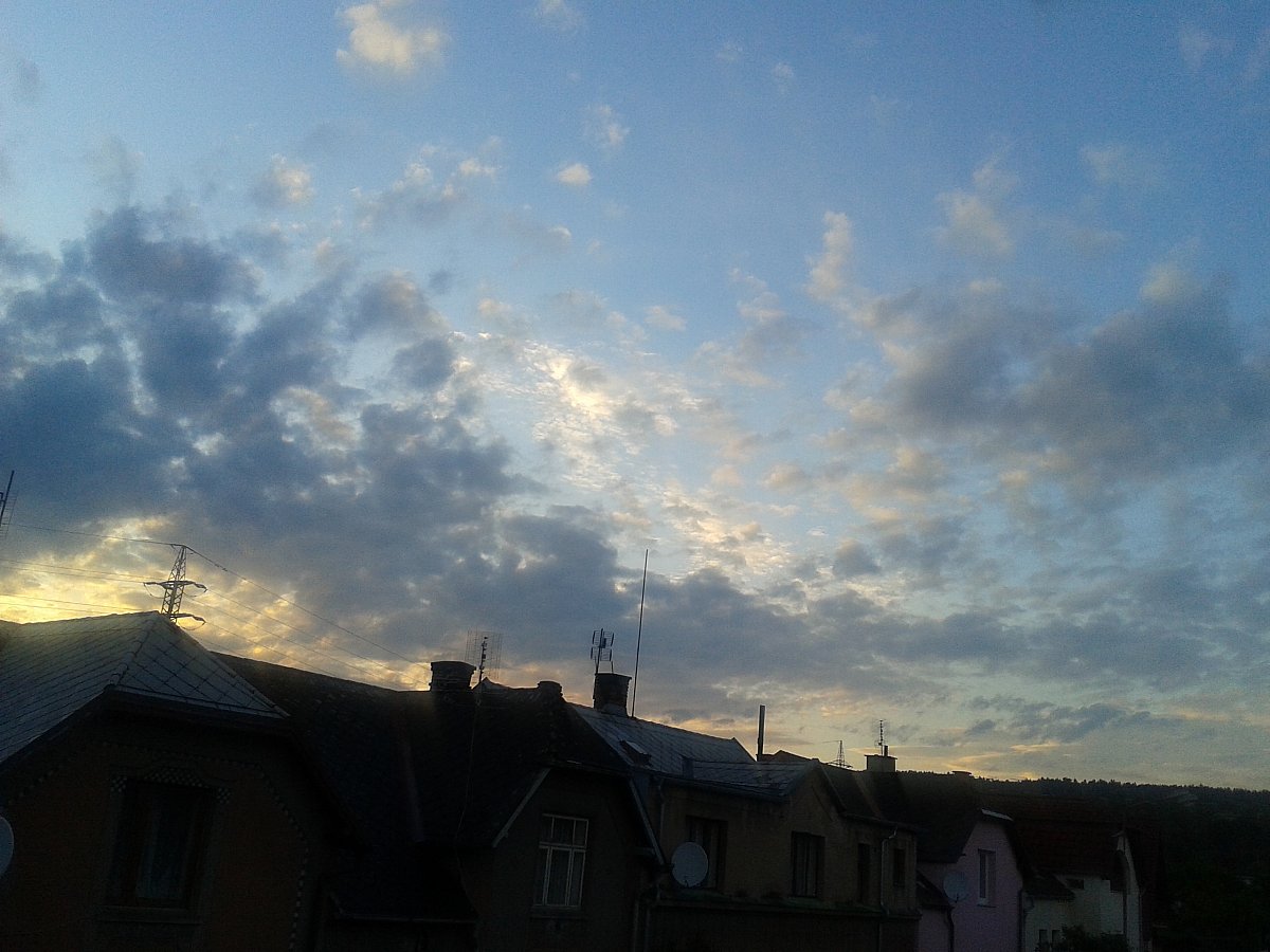 Tlak 1012 hPa, vlhkost 50% vítr severní 4,3 km/h. Od západu se sem něco sune a na opačné straně je ještě jasno...