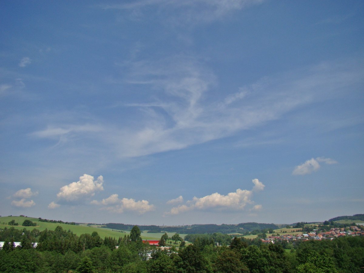 Tlak 1013 hPa, vlhkost 35% vítr střídavý točivý mementálně jihozápadní 7,2 km/h. No dnes je horko šílené. Na všech stíněných teploměrech je od 32,2C do 32,7C a to mám 3 čidla digi a několik rtuťových a několik lihových stíněných teploměrů v prostoru daleko od zástavby na trávníkovém podkladu ve výšce očí a některé ve výšce 2 m i pod stromy....