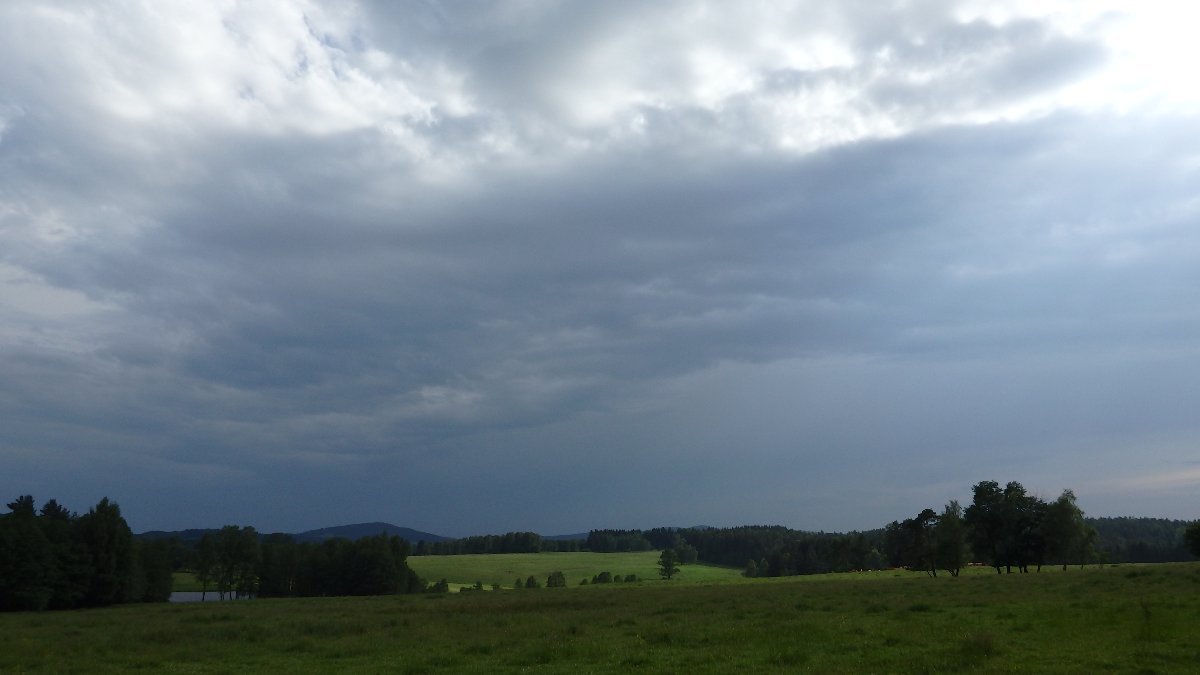 tlak 1015 hPa, vlhkost 97%, vítr od Z, je šero jako včera ve 21 30 hod.
