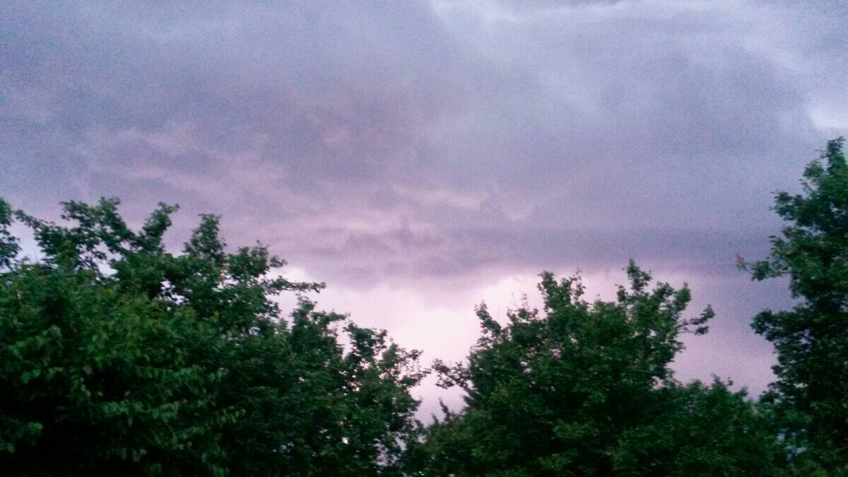 Prudký JZ vítr, začalo silně pršet, čilá blesková aktivita, bouřka jde SZ směrem.