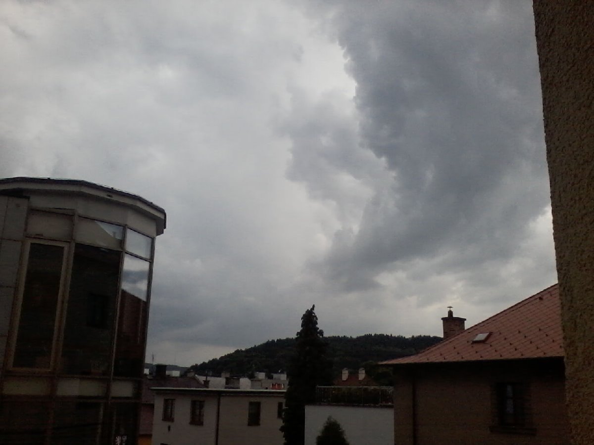 tlak 1012 hPa, vlhkost 78%, vítr od SV, pěkně bouří