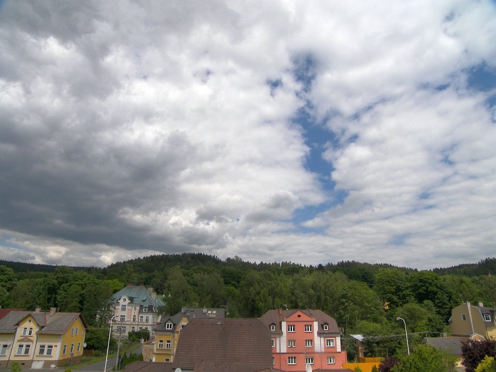 Pohled na východ, polojasno až oblačno. Trochu pofukuje.