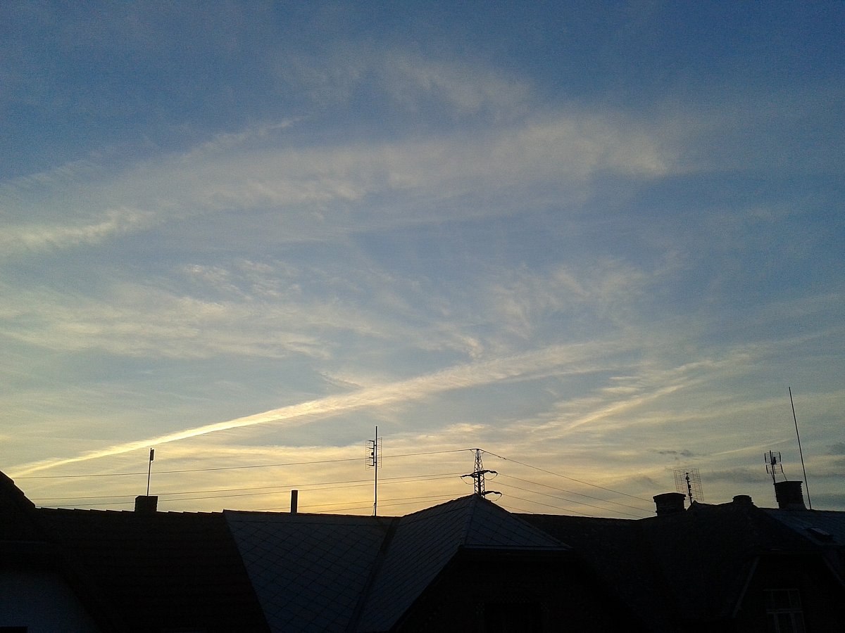 Krásný západ slunce s cirrovitou oblačností.