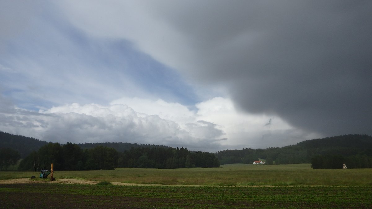 Polojasno, slabý vítr. Foto 15.54 hod.