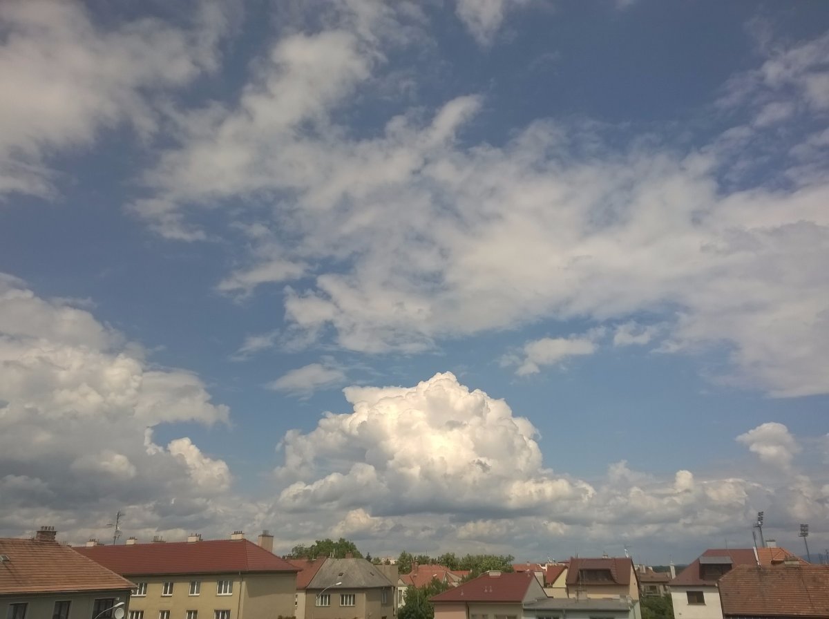 Tlak 1019 hPa, vlhkost 61% vítr severozápadní 20,9 km/h. Na fotu je spíše zataženo, ale honí se to kdy je i polojasno a také možná i zaprší :-)