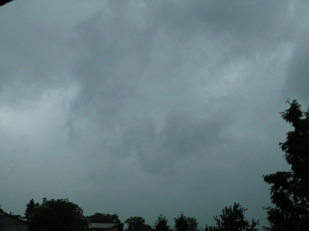 ...velmi rychlý postup srážkové oblačnosti 10/10 (spodního patra) od z, silný přízemní vítr, cca dvě hodiny beze srážek...