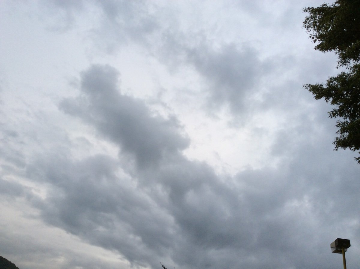 ...bezvětří, Ci v blankytu večerní oblohy rychle podběhla z Německa postupující dešťová sloha přes níž nakukuje měsíček...