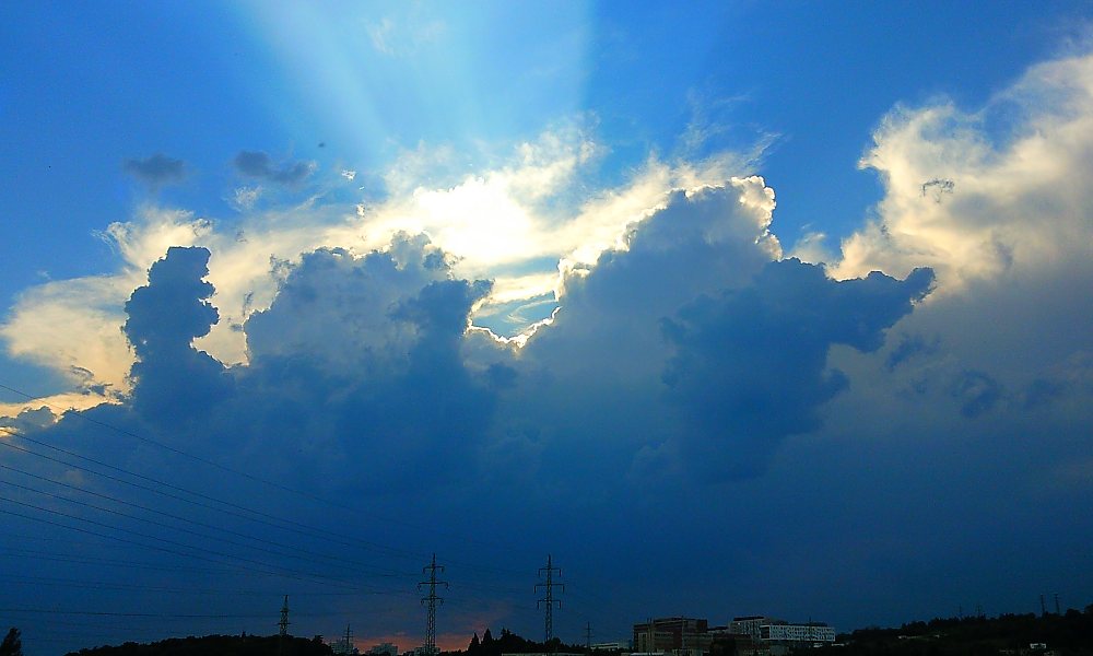 V půl devátý neuvěřitelná teplota na konec května :-) Vysoká vlhkost,od Z už jen tmavá obloha,nad námi modro,zvedá se vítr,dnes by nás nějaká bouřka mohla potkat,a Hřebeč taky,tam spíš,než u nás,jde to severněji od nás,takže se nám to asi vyhne,a poněkud jádra i slábnou,jestli se mi to nezdá... :(