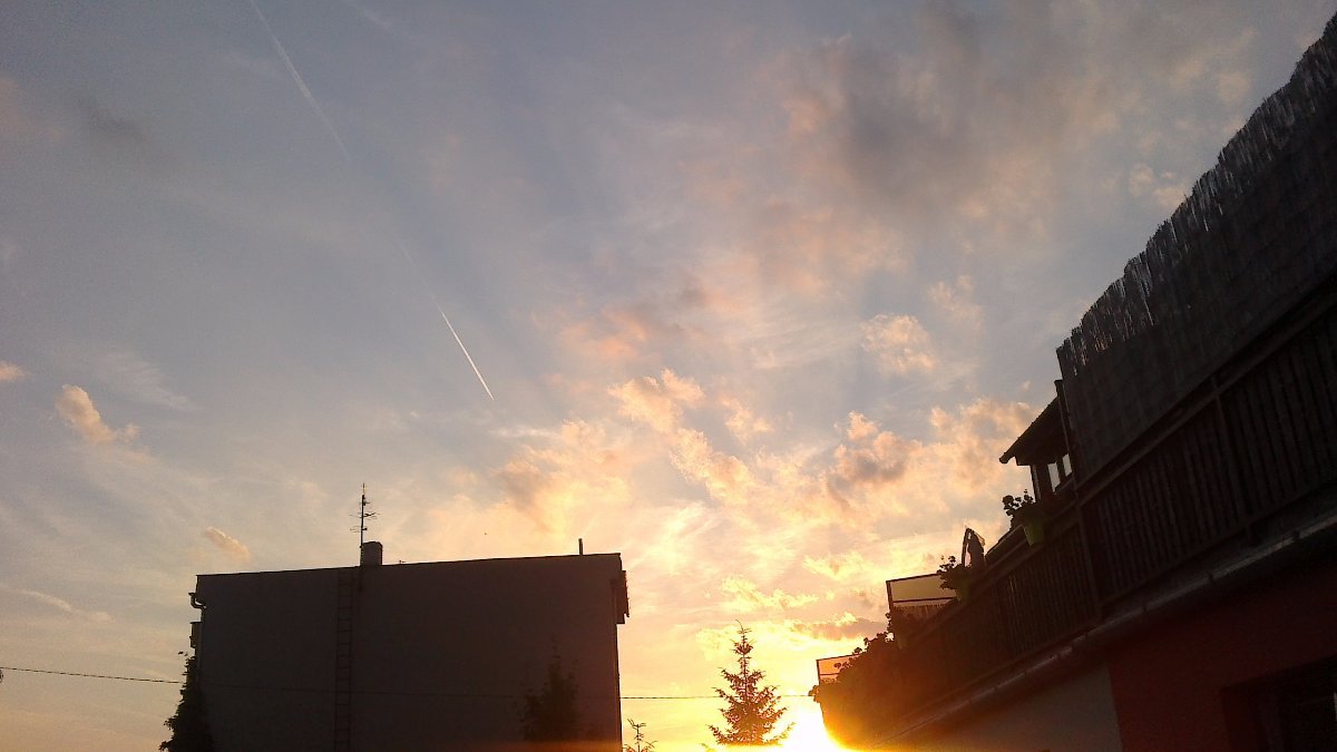 Klidno,tlak 1024hPa,vlhkost, vlhkost 48%,dnešní západ Slunce.