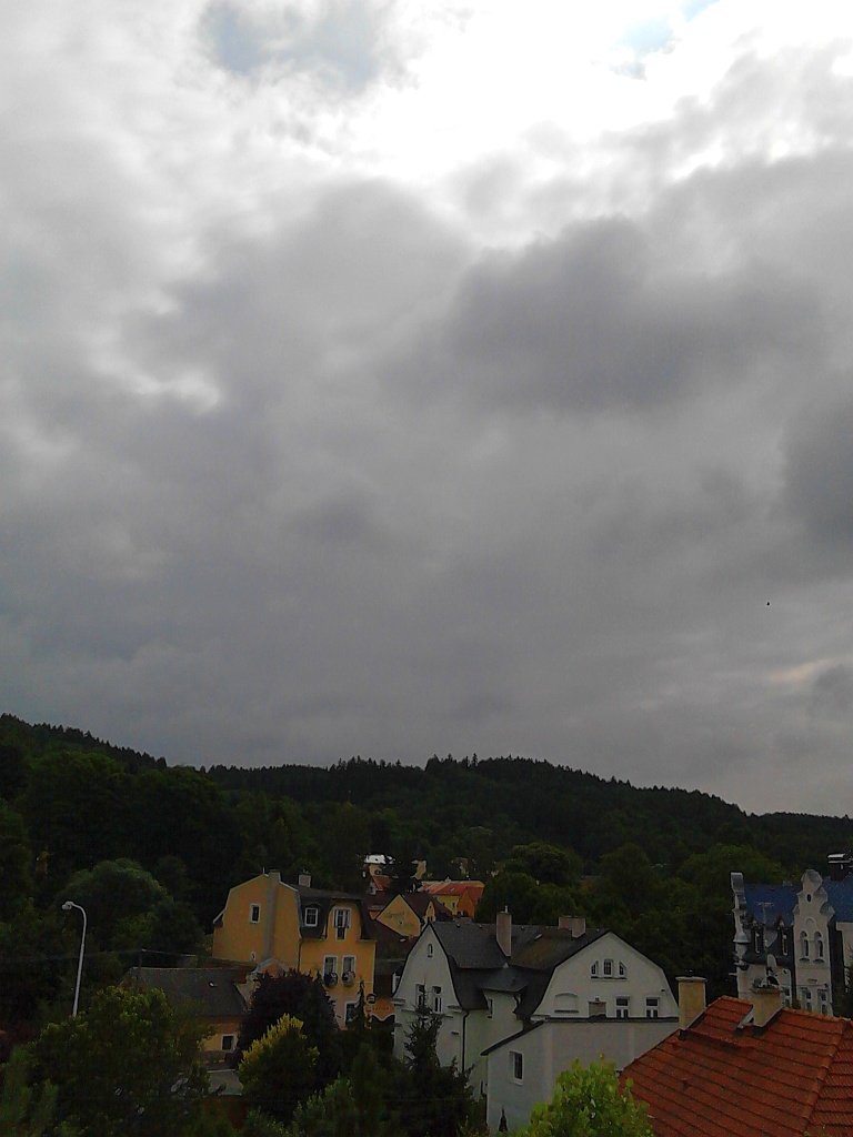 Skoro zataženo,slabý vítr,tlak 1021hPa,vlhkost 68%