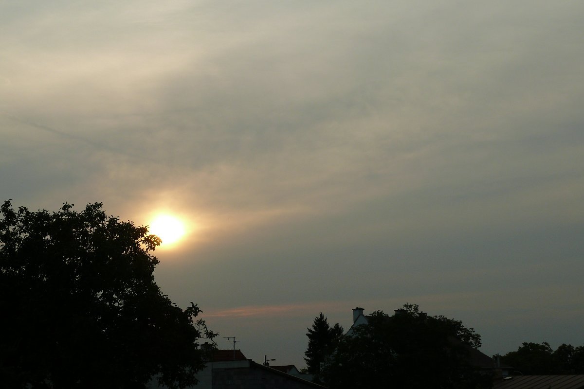 Tlak 1006,7 hPa, klidno, dusno, od V se přibližuje bouřková oblačnost.