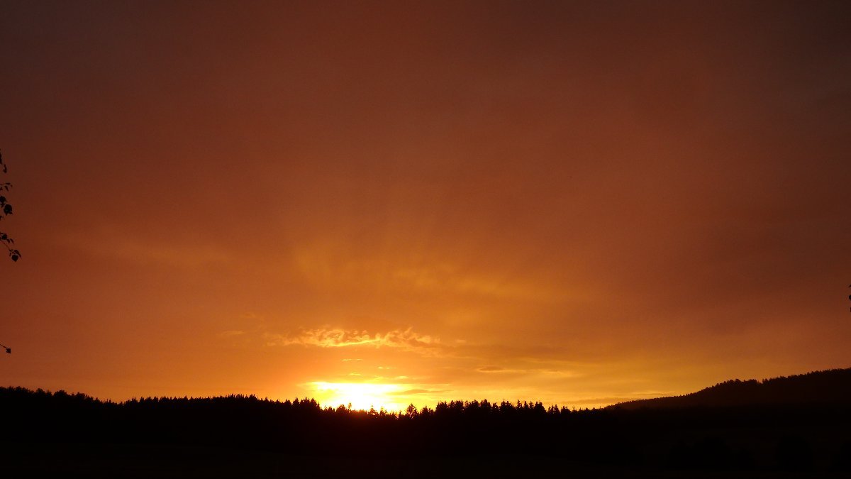 Slabě prší,tlak 1014hPa,západ Slunce...
