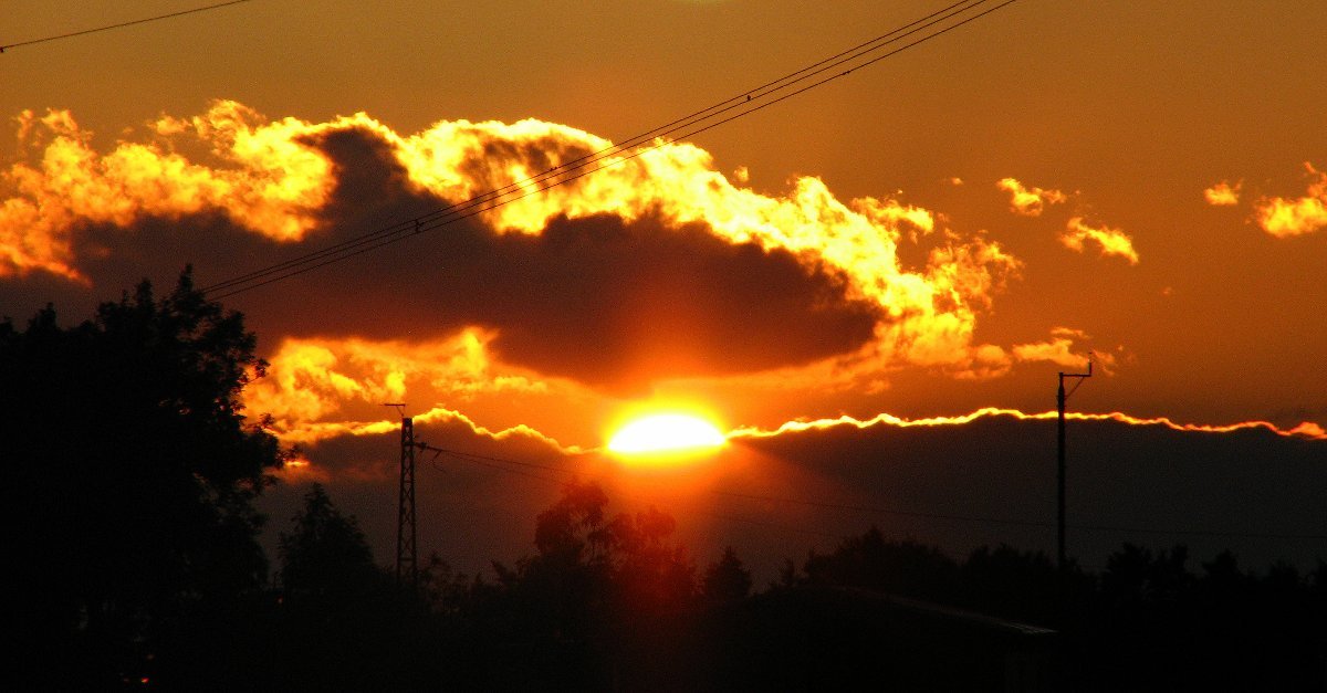 Obloha plna ruznych typu mraku.V dalce na obzoru nekde u Mlade Boleslavi huste temne provazy deste.