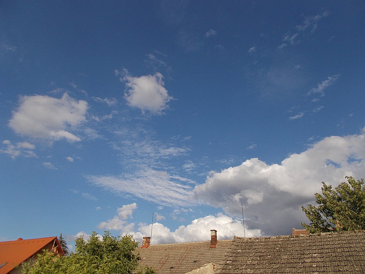 6/8 Cu, Ac, mírný západní vítr, vlhkost 37%, tlak 1010.1hPa. Oblaky středního patra uspořádané do vln.