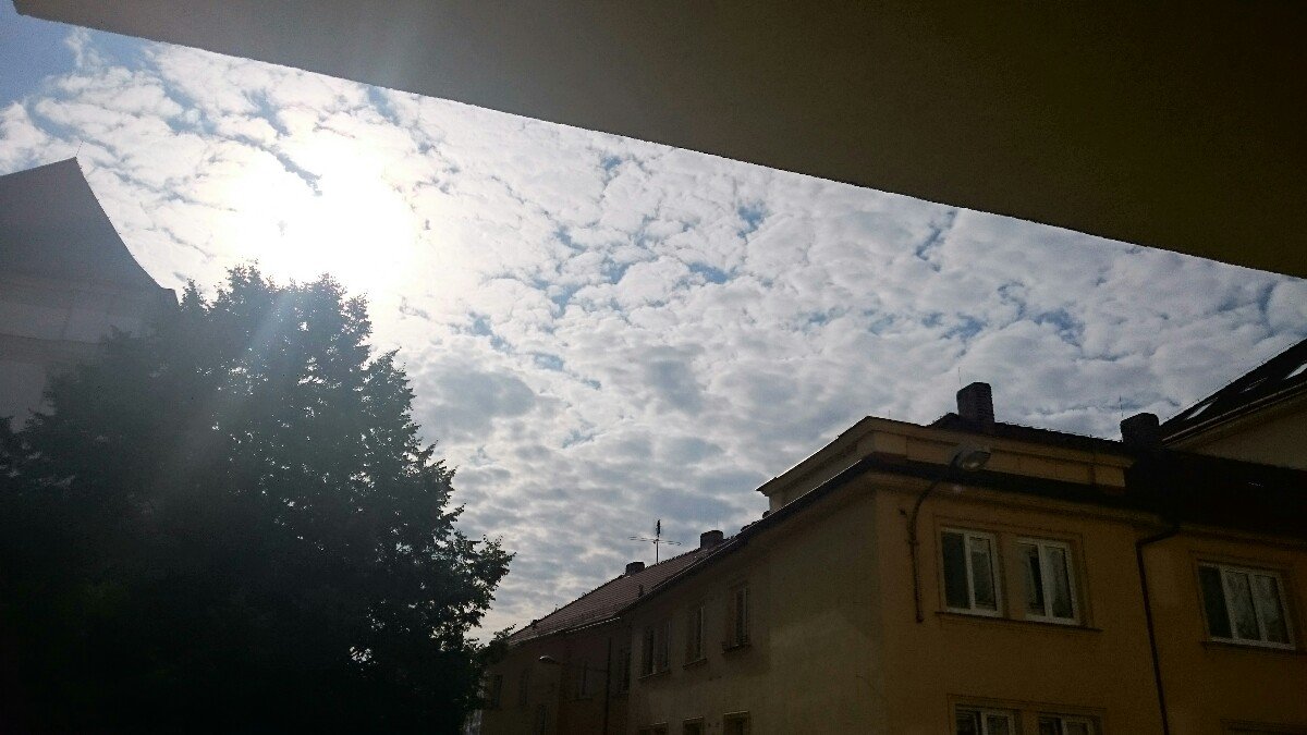 ...poslední zbytky oblačnosti odchází z ranní oblohy, bezvětří...