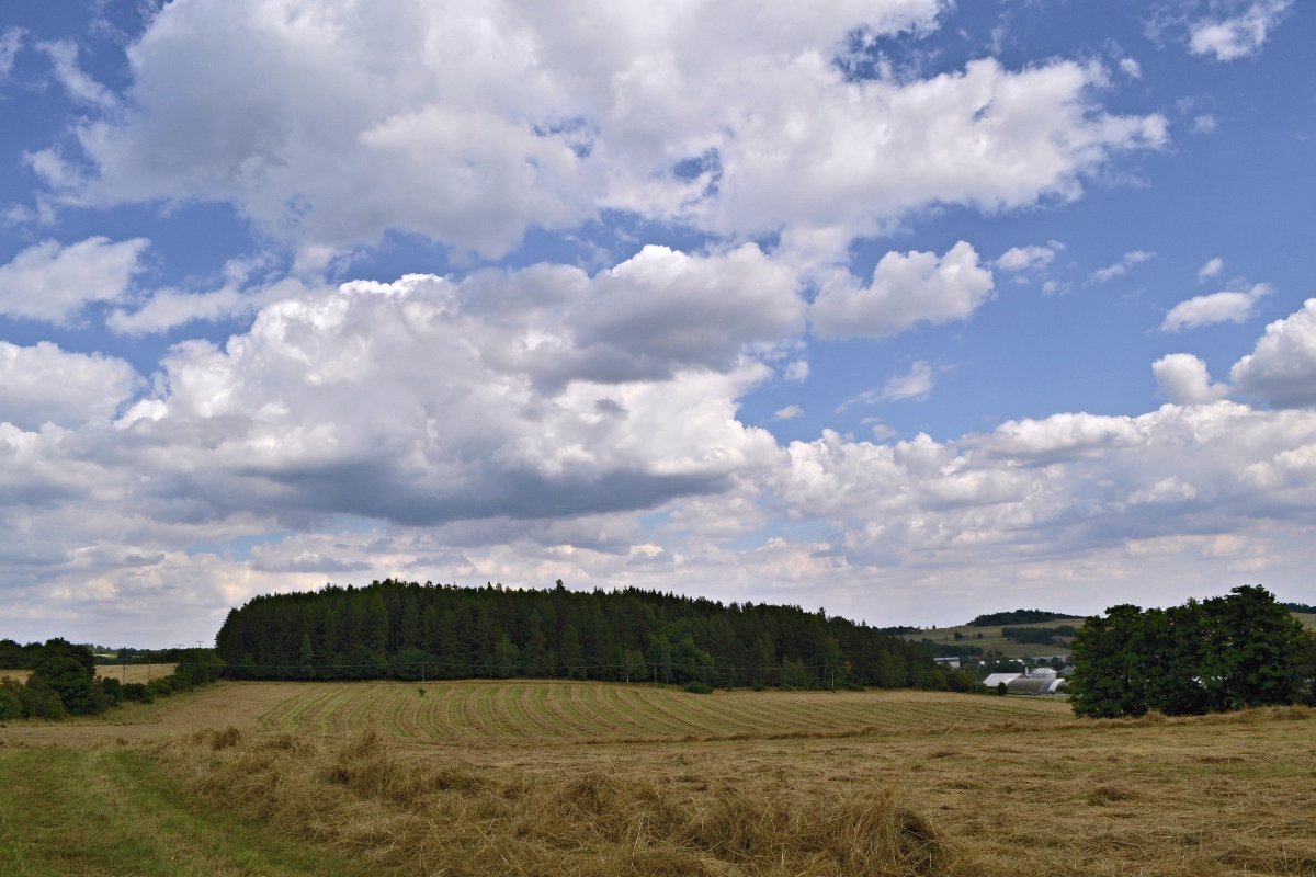 přibývá mraků oproti dopoledne skoro jasné obloze