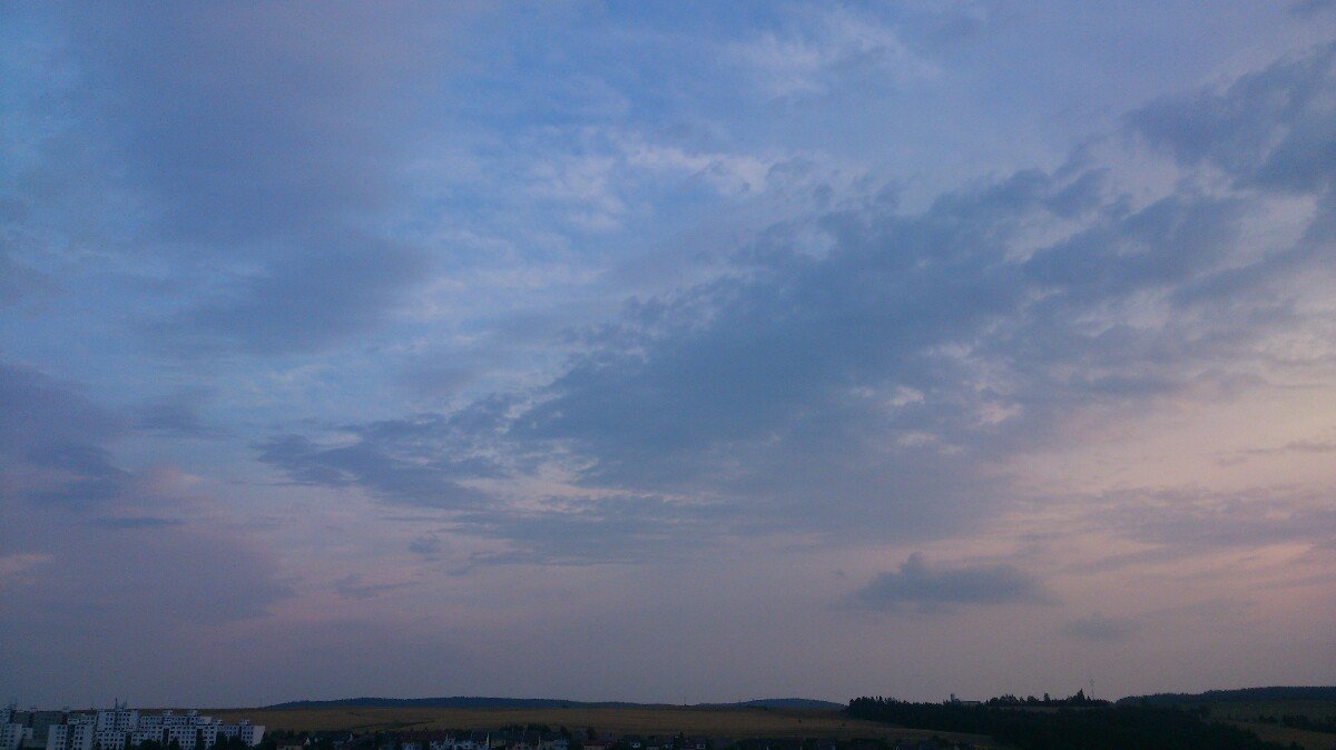 Klidno,tlak 1018hPa,Slunce zapadá..